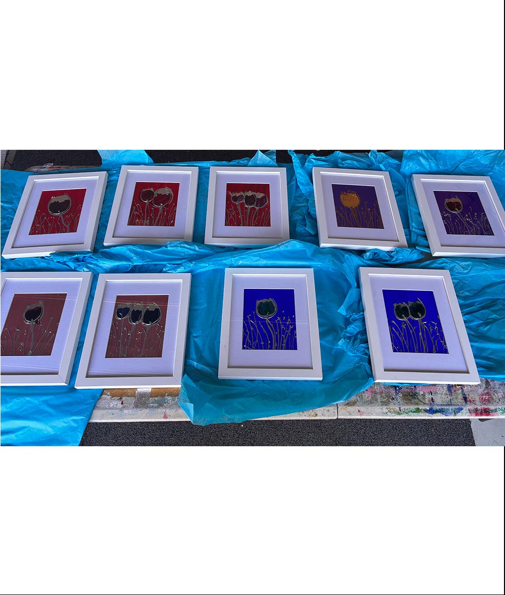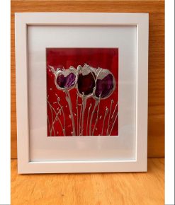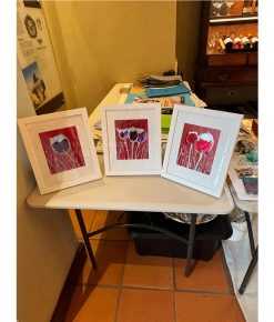 Professionally framed in a white frame with a white mat and glass.