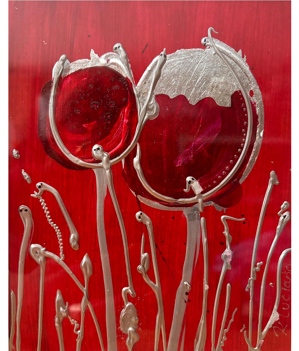 acrylic/silver leaf on card.